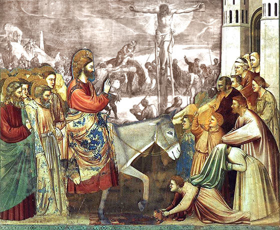 In de vier evangeliën lees je dat Jezus op een ezel de stad Jeruzalem inreed en dat mensen hun mantels voor hem uitspreidden als een rode loper. Ze zwaaiden met palmtakken en bejubelden hem met de woorden: Hosanna! Gezegend hij die komt in de naam van de Heer.