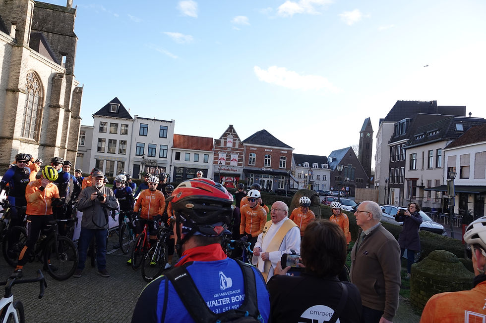 Pater Blommerde sprak voor een voorspoedig en behouden wielerseizoen de zegen uit met grote bezieling en veel wijwater, wat duidelijk werd gewaardeerd. De ruim 90 wielrenners reageerden met een warm en vrolijk gelach, en gingen daarna op weg onder een aangenaam zonnetje en een blauwe lucht.